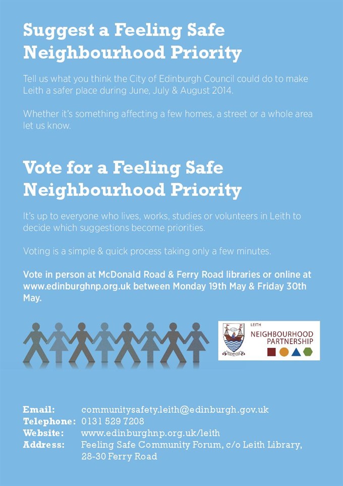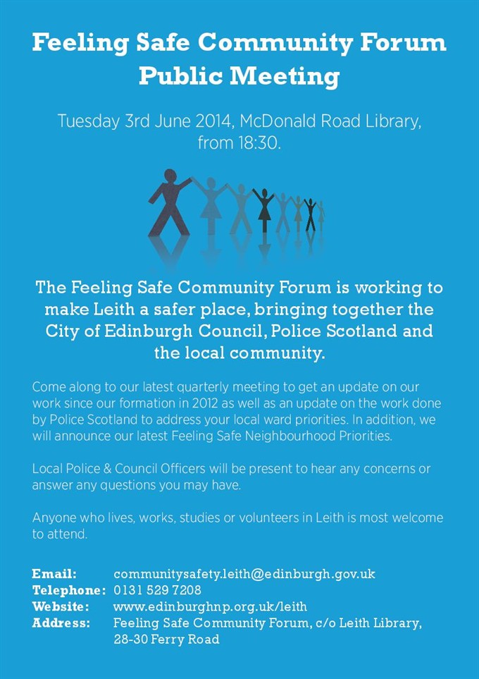 Address Feeling Safe Community Forum, c/o Leith Library, 28-30 Ferry Road