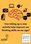 We are a research team at Heriot-Watt University exploring how taking up a new activity might benefit our thinking skills and wellbeing. We are looking for people aged 65 and over in Edinburgh and the Lothians to take part.
