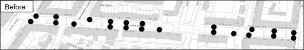 Prior to the concept testing, Albert Street counted 22 locations for bins. After the new layout has been implemented the number of location has decreased to 15, with a reduction of 30%.