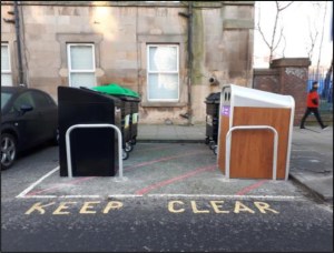 The Zero Waste Leith monitoring trial also identified that the configuration of the bin layout – side by side – can restrict access to the bins by residents.
