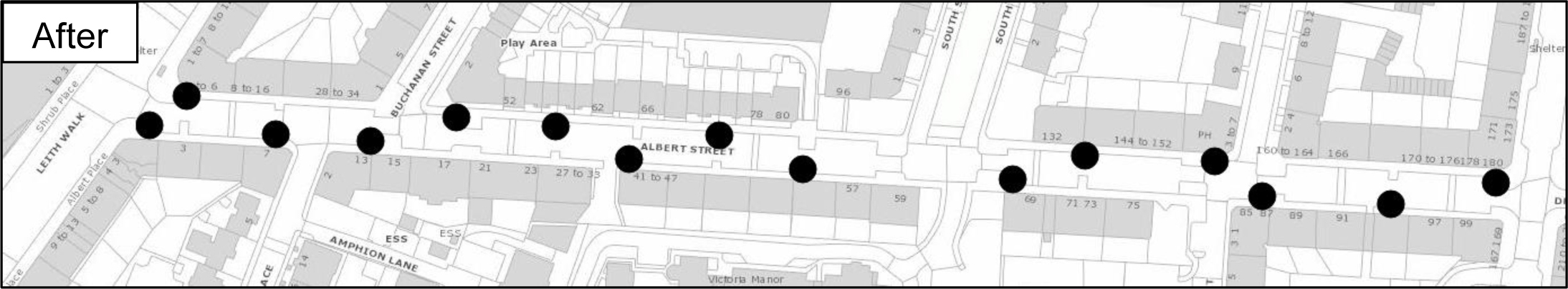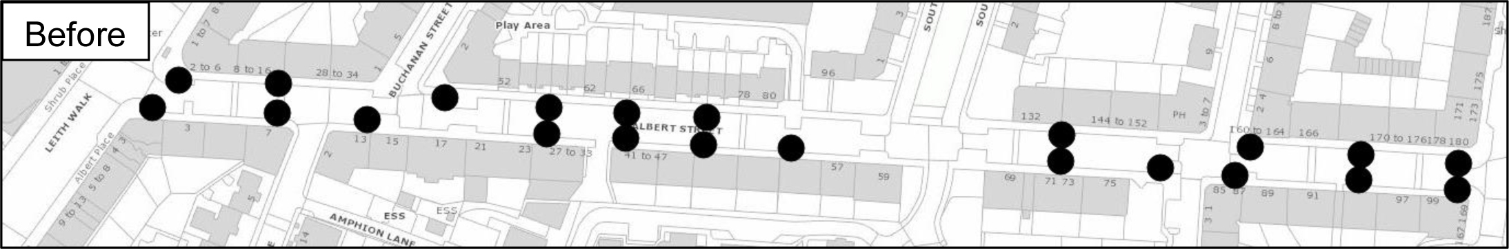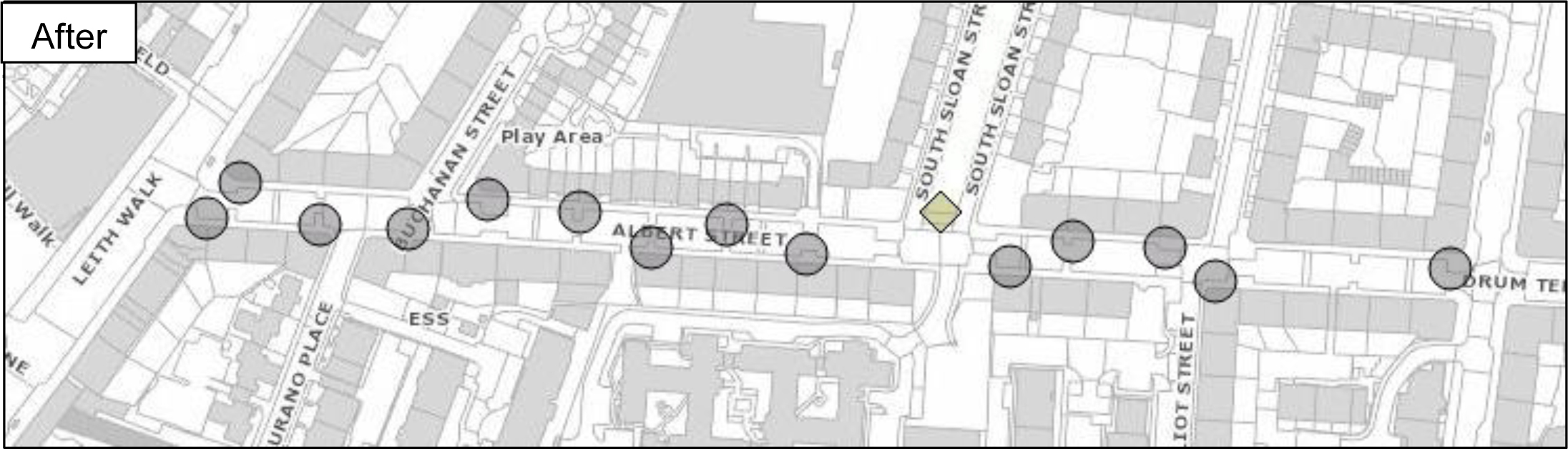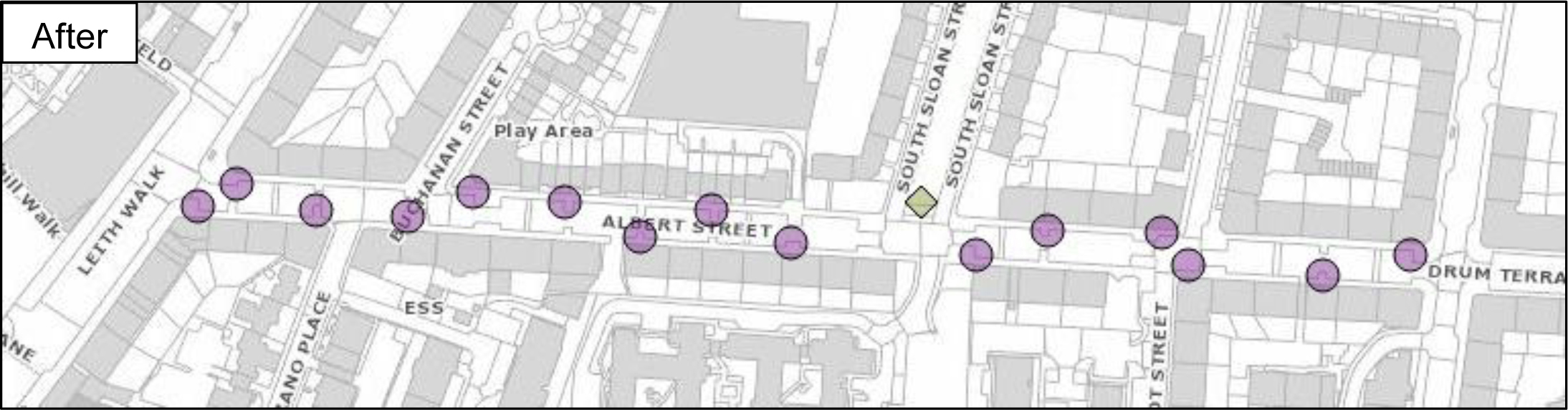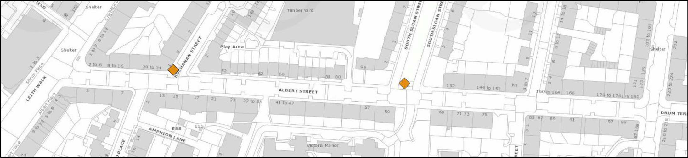 The concept testing includes all the properties and locations in Albert Street excluding two locations: 1 Buchanan Street and recycling point at South Sloan Street as per map and pictures below.