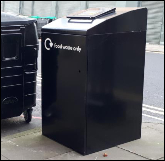 The 240L food waste bin with the housing has been chosen also considering the Changeworks “Edinburgh Communal Recycling Consultation” report on which it has been assessed that food waste recycling was the least recycled material out of all materials surveyed. This is due to the design and access of food waste bins as the ageing 500L food waste bins are seen as unhygienic and unpleasant to use.
