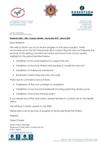 We write to inform you of our recent progress on the above project. Works recommenced on the 02nd December 2019 constructing the new roof following the removal of the existing concrete roof which was found to be of poor quality. Highlights in this period are listed below –