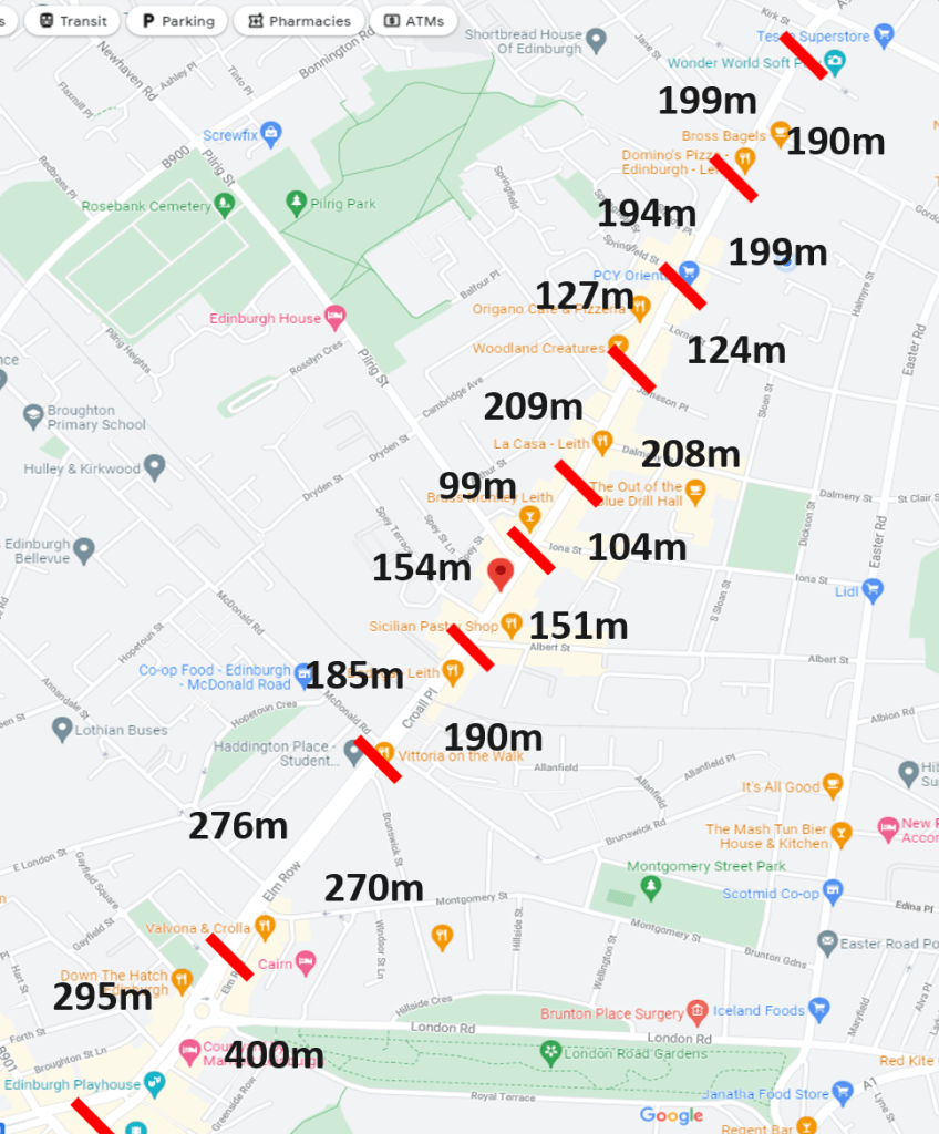 - Laundrette/La Favorita’s (just south of Dalmeny Street)
